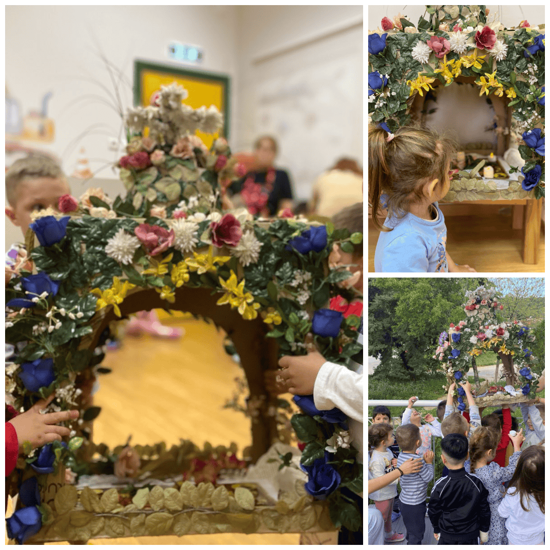Έτσι φέτος, την Μεγάλη Τετάρτη, τελευταία μέρα λειτουργίας μας πριν το Πάσχα, στολίσαμε έναν μικρό Επιτάφιο, μάθαμε γιατί τον στολίζουμε και γιατί έχει μέσα μια εικόνα του “Χριστούλη”. Ακούσαμε το “Αι γενεαί πάσαι” και περιφέραμε τον όμορφο επιτάφιο μας μέσα στον παιδικό σταθμό !